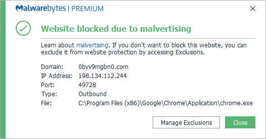 The domain 0byv9mgbn0.com was blocked because it was associated with malvertising.
