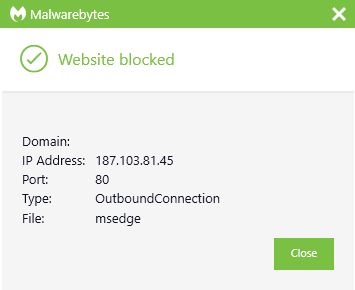 Malwarebytes blocks the IP 187.103.81.45
