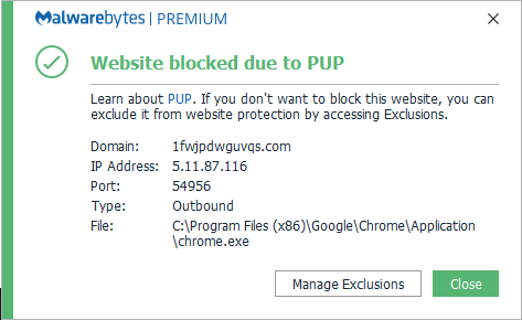 Malwarebytes blocks the domain 1fwjpdwguvqs.com