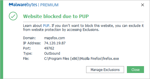Malwarebytes blocks the IP 74.120.19.87