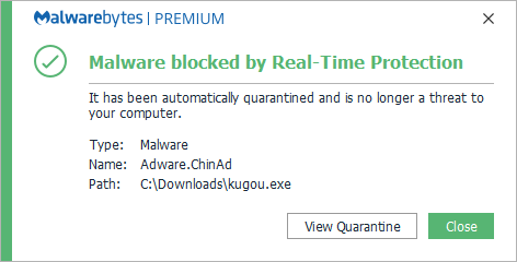 Malwarebytes can detect and remove Adware.ChinAd without further user interaction.
