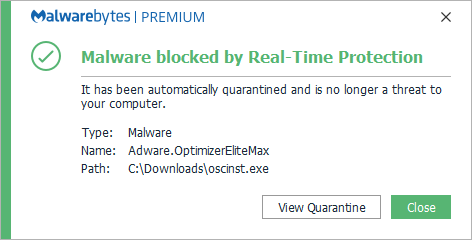 Malwarebytes blocks Adware.OptimizerEliteMax