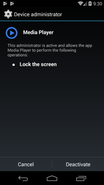 Android/Trojan.HiddenAds.BiRa requests device administrator rights with permission to Lock the screen