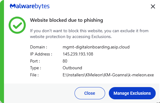 Malwarebytes blocks mgmt-digitalonboarding.asip.cloud
