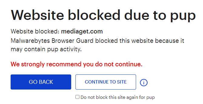 The entire domain mediaget.com was blocked by Malwarebytes because it was associated with a potentially unwanted program (PUP) and some subdomains are blocked because they were associated with a Trojan.