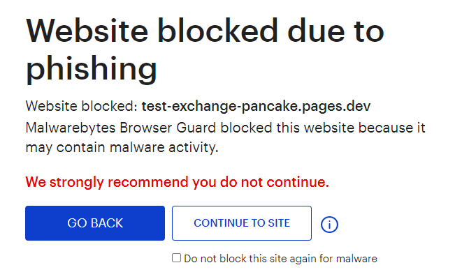 Some subdomains of the domain pages.dev are blocked by Malwarebytes because they were associated with phishing.