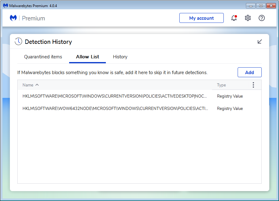 When a Potentially Unwanted Modification (PUM) is detected on your computer, Malwarebytes for Windows does not know whether it was authorized. Optimization software, malware, and Potentially Unwanted Programs (PUPs) are known to make these types of changes, hence they are regarded as potentially unwanted by design. To have Malwarebytes for Windows ignore a PUM, you must add the PUM to the Allow list. Here’s how to do it.
