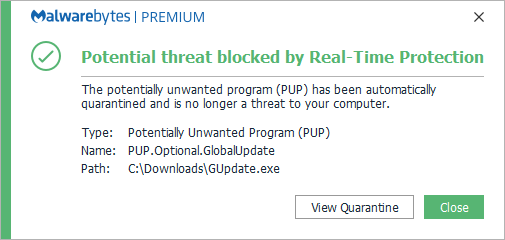 Malwarebytes blocks PUP.Optional.GlobalUpdate