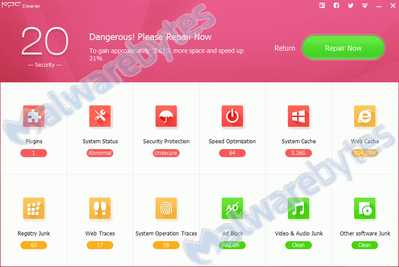Malwarebytes blocks PUP.Optional.MorePowerfulCleaner