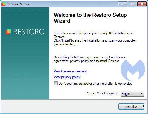 Malwarebytes can detect and remove PUP.Optional.Restoro without further user interaction.