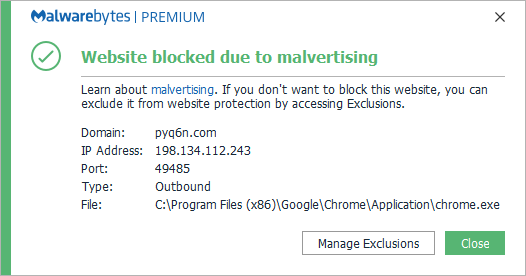 The domain pyq6n.com was blocked because it was associated with malvertising.