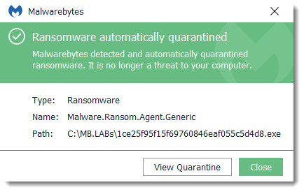 Malwarebytes protects users from the installation of Ransom.Cryptomix.