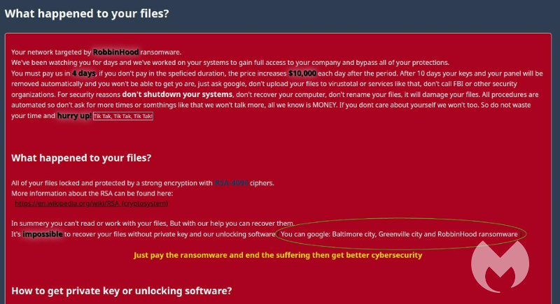 Malwarebytes Real-time protection blocks Ransom.RobbinHood