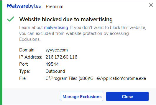 The domain syyycc.com was found to act as an ad-rotator redirecting to sites involved in fraud, phishing, and scams.