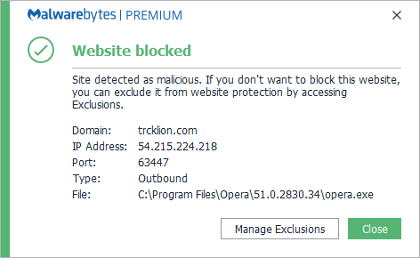 Malwarebytes blocks tricklion.com