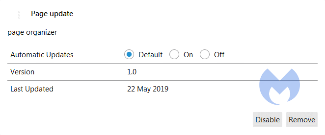 Users of affected systems may notice a Firefox extension that is called Page Update and the corresponding .xpi file has a random name consisting of capital characters and underscores.
