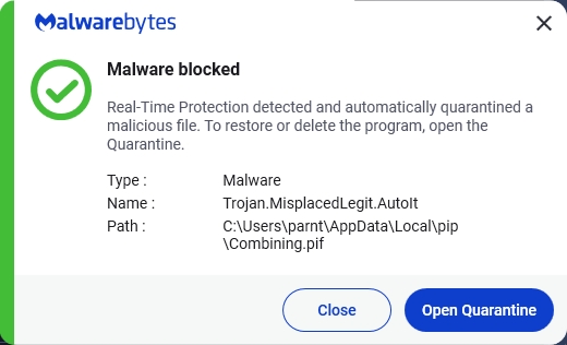 Trojan.MisplacedLegit.AutoIt is Malwarebytes’ generic detection name for renamed copies of the legitimate AutoIt executable in an unexpected location.