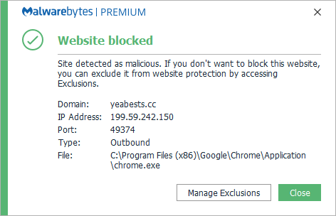 Malwarebytes blocks yeabests.cc when Trojan.WMIHijacker.ClnShrt is present