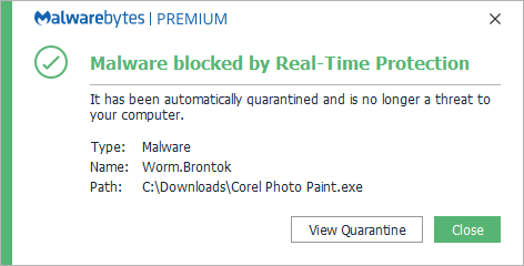 Malwarebytes can detect and remove Worm.Brontok without further user interaction.