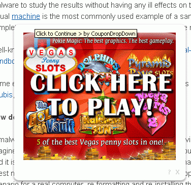 The kind of text popups that is more worrying is the one that comes from your own computer, or usually, your own browser. Here we can make a distinction between wanted and unwanted. These vary from “I installed it myself and I find it useful” (for example the translation option in the Google Toolbar) to “downright annoying” (for example the CouponDropdown adware shown below).