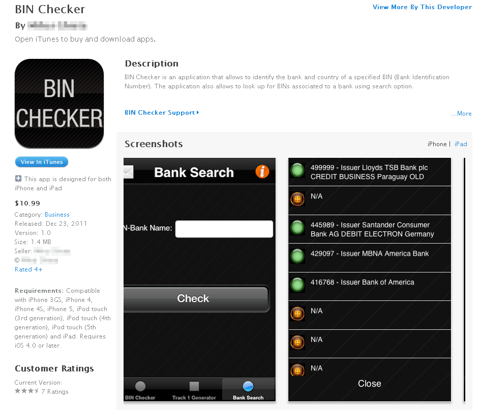 Although checking BIN numbers is not illegal, this app’s website links to another site that sells email lists for spam as well as hacking tools: