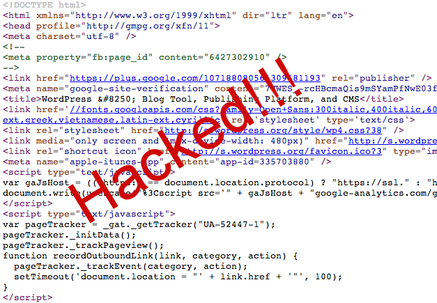 One other method to redirect traffic is to hack your site’s CMS (Content Management System). If you use WordPress or Joomla!, you know they require PHP, a universal server-side scripting language. The core PHP files can easily be injected with malicious content in the same fashion a Windows file can be infected with a virus and still work normally. In many cases the malicious code is inserted either at the top or the bottom of a page, but this is by no means a standard.