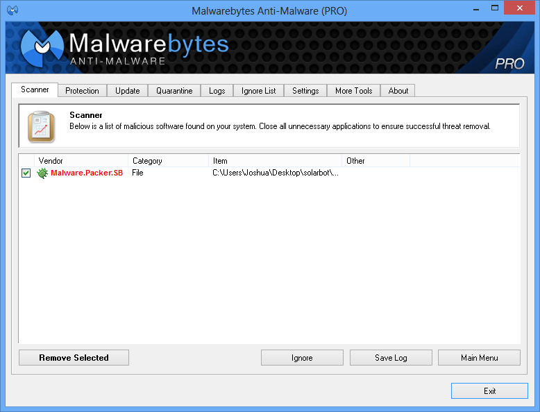 We’ll continue to keep you updated with any unique findings on the solarbot malware. As a closing note, users of Malwarebytes Anti-Malware are protected from known solarbot variants, detected as Malware.Packer.SB.