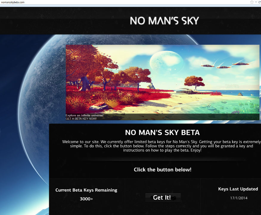 As much as you may want to jump on board a beta for No Man’s Sky, it simply doesn’t exist yet and you shouldn’t fall for this one – all you’ll achieve is some affiliate cash for the scammers and a couple of potentially unwanted additions to your software collection.