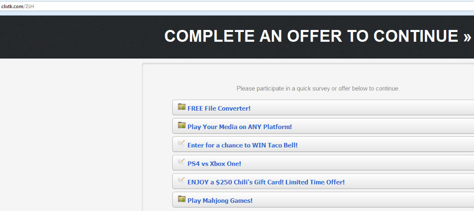 Clicking the button will present the end-user with survey pages tailored to their geographical location, and the offers are everything from the usual “give us your personal information” questions to downloads of various programs.