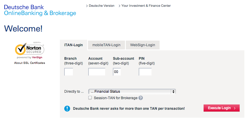 One of these is the Deutsche Bank (Germany) and this is what its login page looks like: