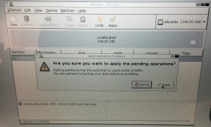 Having procrastinated the inevitable with all these backups I then forged ahead, and blew away the contents of the drive, using g-parted live cd, a partition manipulation distribution of Linux. I do this to verify if there are hidden restore partitions on the disk, something fairly common on laptops.