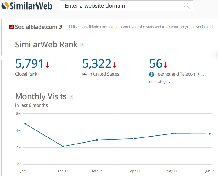 According to site tracker SimilarWeb, SocialBlade.com has a global rank of 5,791 and had around 3.6 million visits last month.