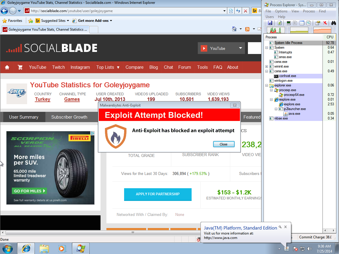 In what appears to be a similar campaign, the YouTube stats tracker site SocialBlade.com is connected with malicious redirections that also lead to the Nuclear Pack EK.