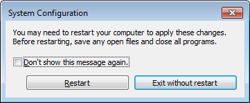 The preferred, but not always available way to boot to “Safe Mode” is by using msconfig. After running msconfig you can find the “Safe boot” options under the “Boot” tab. Once you have made your changes click “Apply” and “OK”. Then you should see a prompt like this one.