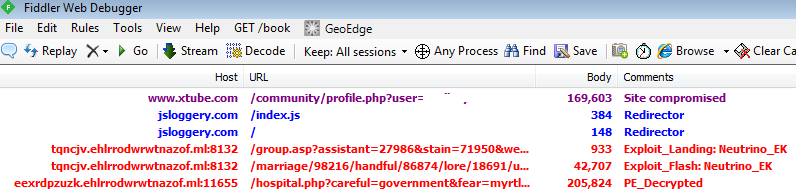 The final step is the Neutrino Exploit Kit which promptly fires a Flash exploit:
