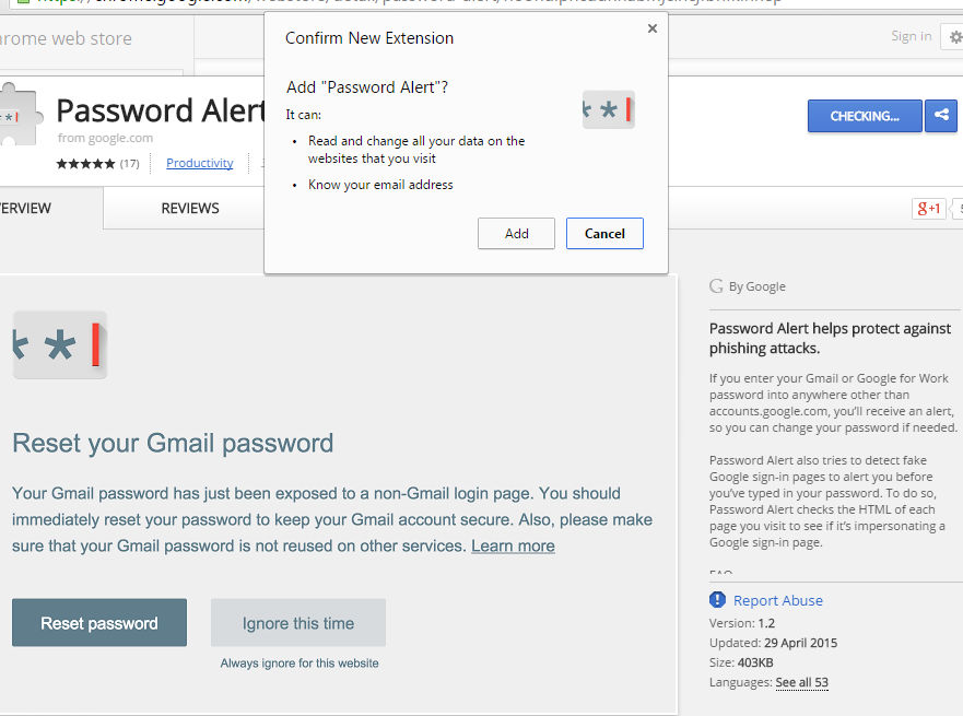 The extension, which only becomes functional once you’ve signed into your Google account, will throw up the metaphorical emergency flares whenever it notices you’ve entered your credentials into a rogue website.