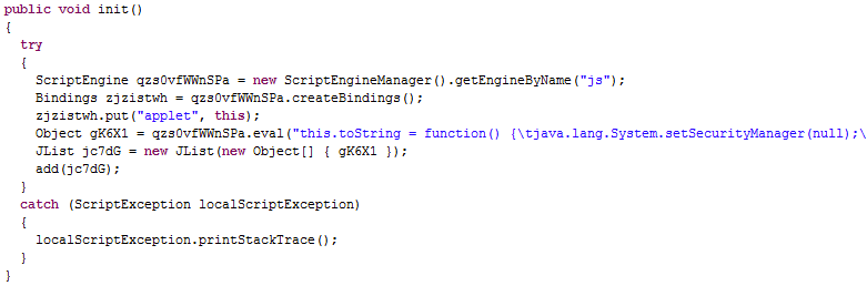 Once again, the applets are not even encrypted and we can clearly see the call to the malware binary which it retrieves from the same server. They made a bit of effort to disguise the file name pretending it is a “.jpg“