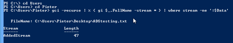 Another thing that you can do with Powershell is add streams to a file. The Powershell command syntax is: