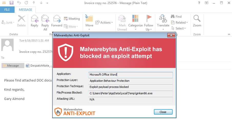 (Please note that only Malwarebytes Anti-Exploit Premium shields Office applications).