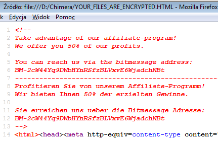 *- Fortunately in case of Chimera authors didn’t decided to really upload the files on the server, so it is only a bogus threat. Yet, from the point of view of the victim the pressure is very real.