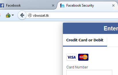 and it did pretty much what you’d expect it to at this point; warnings of locked accounts and requests for login details, swiftly followed by demands for payment details. Also: more rotating facebook logos.