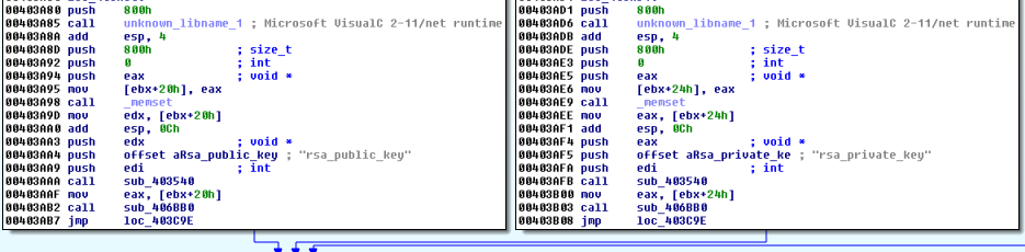 The main difference comes in the method of delivering the public RSA key. In the previous editions, the key was one per campaign and it was stored hardcoded in the binary. Now it changed. The key is downloaded from the server – along with the unique bot ID. Both are stored in the registry and fetched when needed.