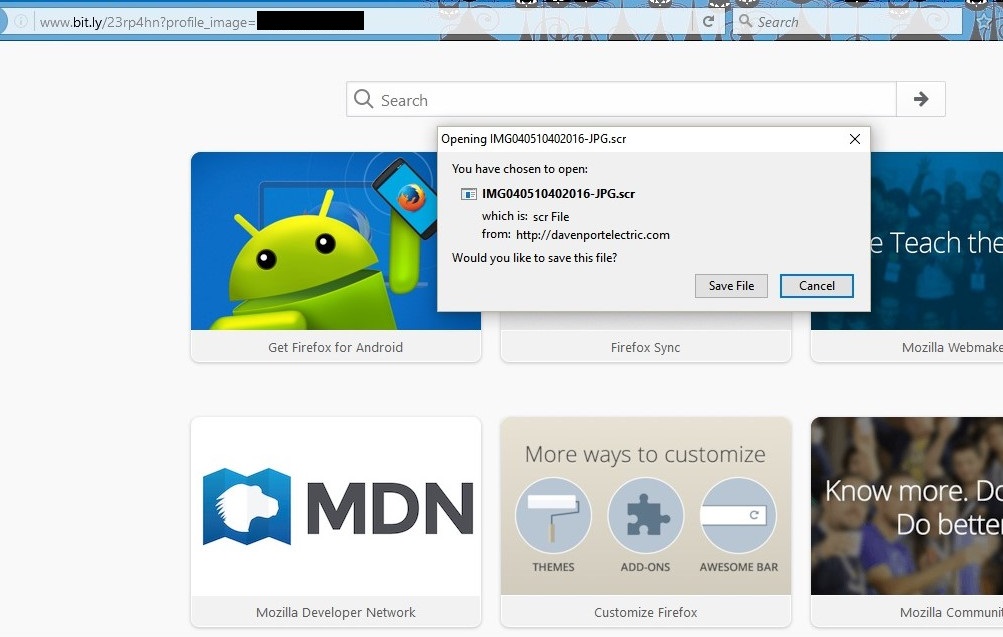 Once Skype message recipients click the link, they are directed to a compromised domain to download a file pretending to be an image, as you can see below: