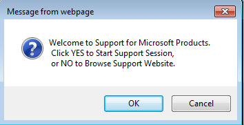 The listed options are YES to “Start Support Session” or NO to “Browse Support Site”, but the buttons are labeled OK and Cancel. I tested for you, and Cancel gets rid of the pop-up. And if you allow more pop-ups and click OK a few times, you will eventually get the option to download the legitimate remote administration tool TeamViewer.