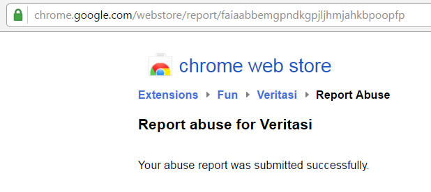 Malwarebytes Anti-Malware detects the Veritasi Chrome extension as Rogue.ForcedExtension. The same is true for all the extensions that we found spreading in this manner.