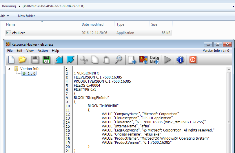 - Adding to its resources the resource of the genuine Microsoft application, under which name it is installed:
