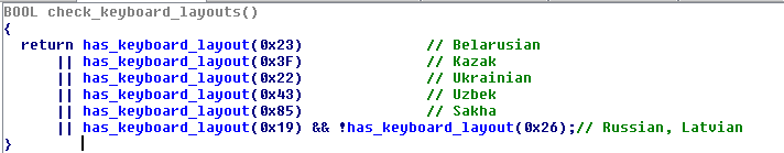 tmp Temp winnt ‘Application Data’ AppData ProgramData ‘Program Files (x86)’ ‘Program Files’ ‘$Recycle Bin’ ‘$RECYCLE BIN’ Windows.old $WINDOWS.~BT DRIVER DRIVERS ‘System Volume Information’ Boot Windows WinSxS DriverStore ‘League of Legends’ steamapps cache2 httpcache GAC_MSIL GAC_32 ‘GOG Games’ Games ‘My Games’ Cookies History IE5 Content.IE5 node_modules All Users AppData ApplicationData nvidia intel Microsoft System32 ‘Sample Music’ ‘Sample Pictures’ ‘Sample Videos’ ‘Sample Media’ Templates Some countries (recognized by keyboard layouts) are also excluded from the attack. Below is the function checking if the selected keyboard layout is present in the system:”>