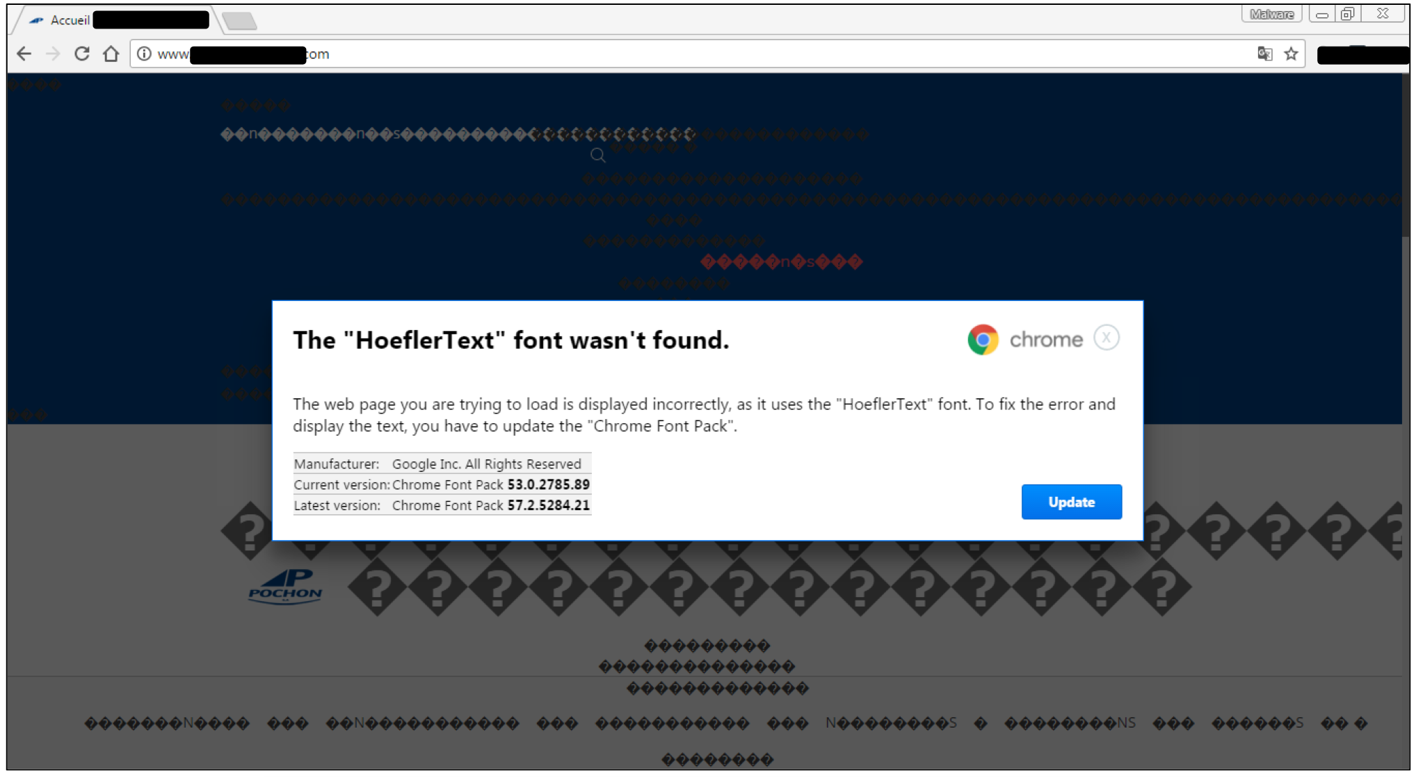 The technique first exposed by Proofpoint, is simple and yet so clever because it truly creates an illusion that there is a problem with the site being viewed. In addition, the prompt to download the ‘Chrome Font Pack’ looks sleek and professional: