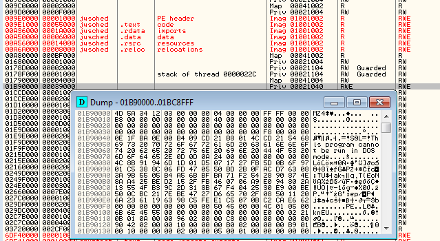 If we try to dump the injected DLL, we can see, that it’s imported table has been destroyed – all the names of the DLLs and imported functions are erased. However, using a dedicated tool I was able to recover it (see more here).