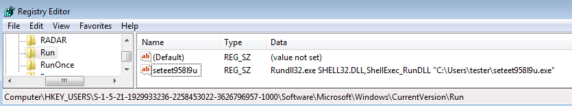 Its persistence is added also with the help of a Run key (in a similar way as the previously described case):